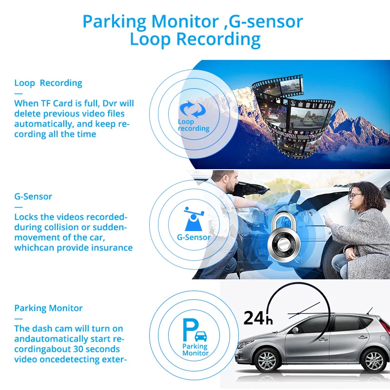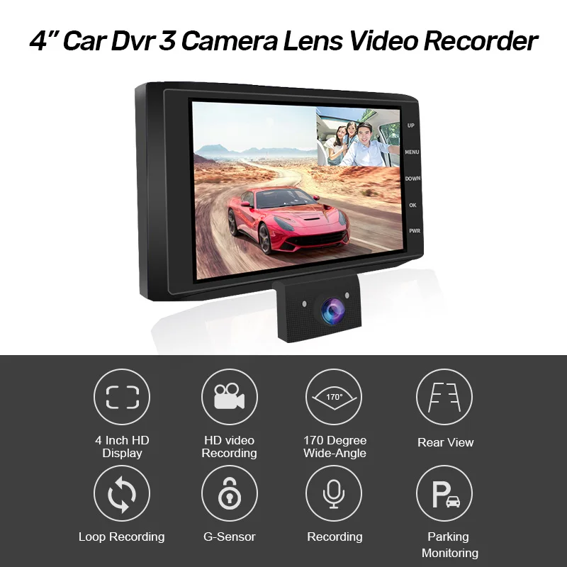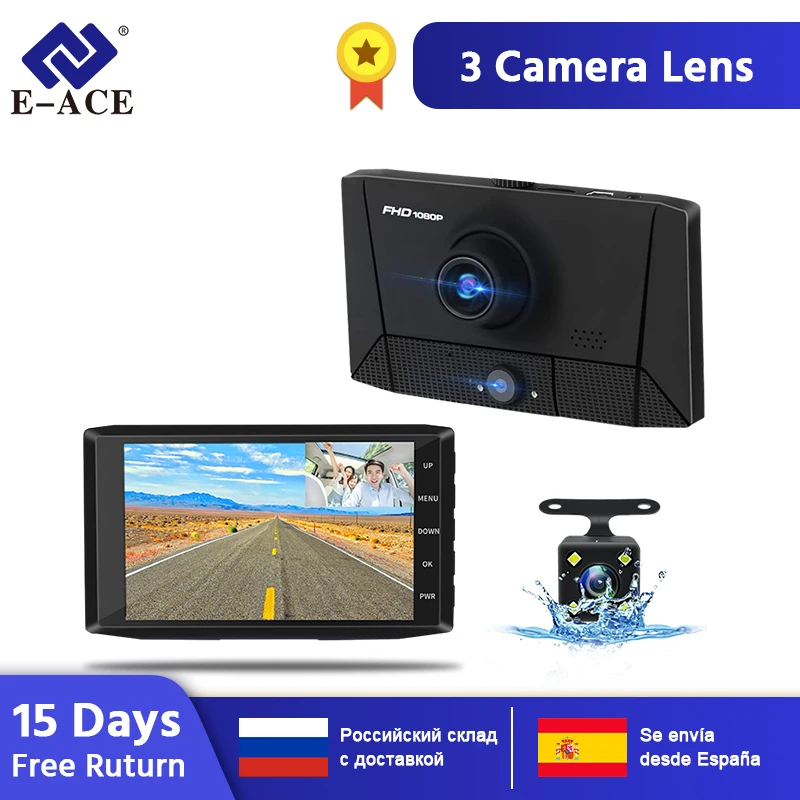 E-ACE B13 DVR 4.0 Inch Car Camera 1080P Auto Recorder FHD Dash cam Night Vision car dvrs 3 Camera l